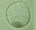 The transgenic bovine cell is fused with a bovine oocyte that has had its chromosomes removed (called an enucleated oocyte). An electrical pulse is applied to help fuse the cells. Once fused with the oocyte, the transgenic cell’s chromosomes are reprogrammed to direct development into an embryo. After 7 days, the transgenic embryo will have about 150 cells and can be transferred into a recipient cow for further development to term.